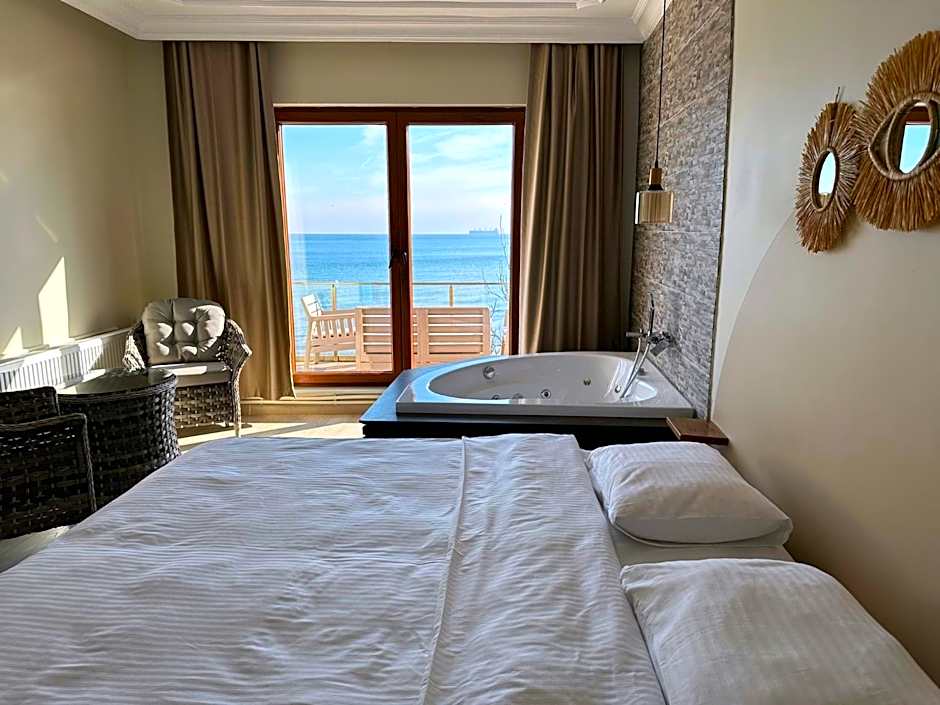 The hot tub is a top feature of this double room. The spacious double room features air conditioning, a mini-bar, a terrace with sea views as well as a private bathroom boasting a shower. The unit has 1 bed.